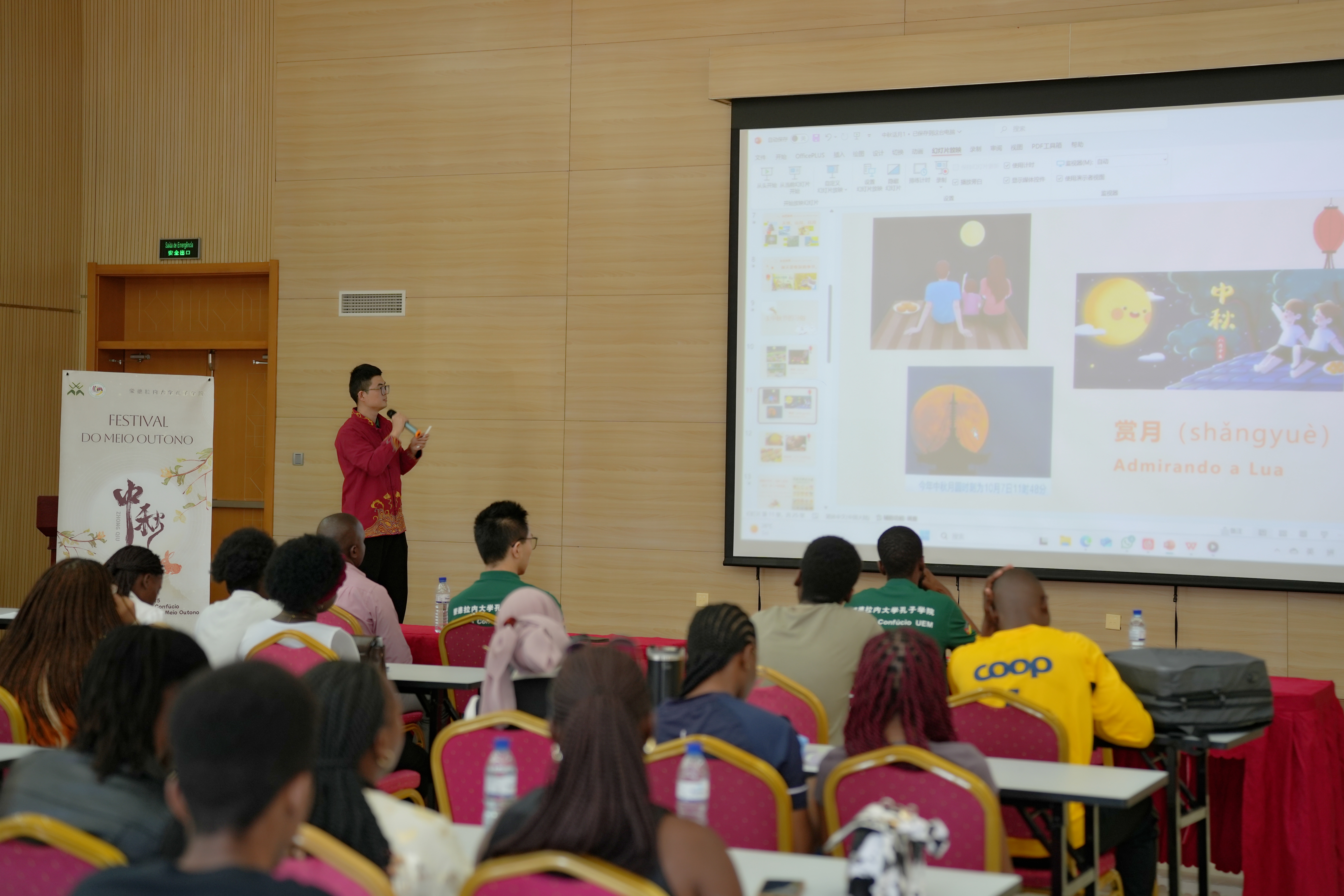 Na manhã do dia 6 de outubro , o Instituto Confúcio da Universidade Eduardo Mondlane realizou com sucesso um evento de celebração do Festival do Meio-Autuno. Envento esse que foi dividido em duas partes: uma palestra cultural e um passeio divertido no jardim. Mais de 200 pessoas participaram, incluindo todos os funcionários chineses e moçambicanos do Instituto Confúcio, bem como os estudantes de língua chinesa.